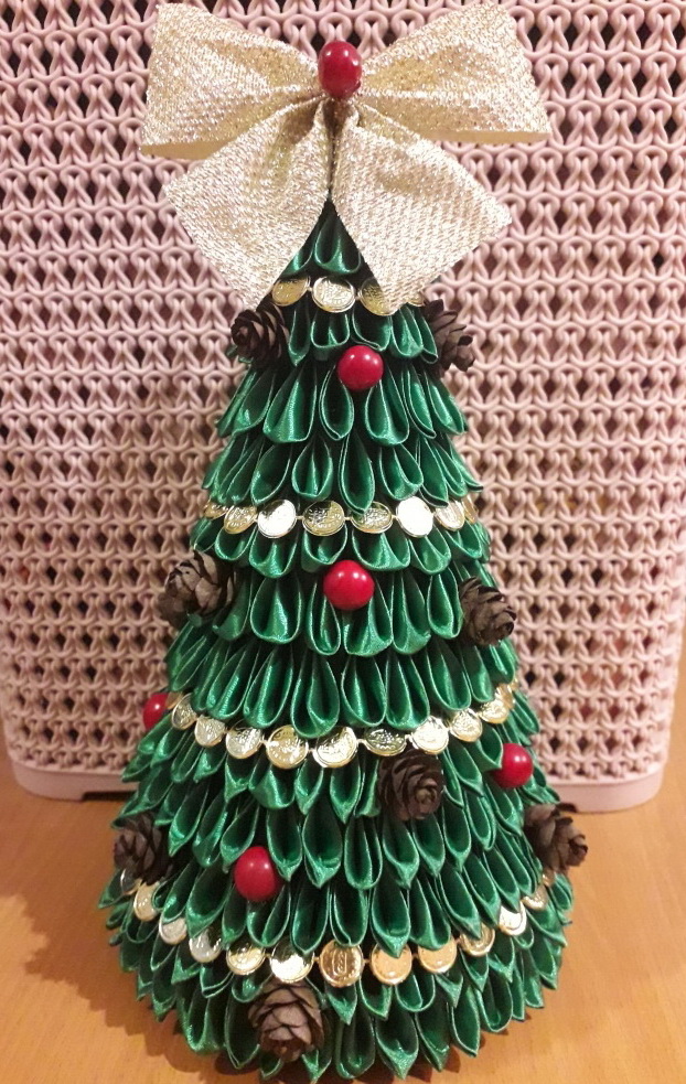 Новогодняя елочка, выполненная в технике канзаши, 2021г.